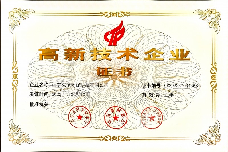 山東久碩環(huán)??萍加邢薰?,成功申請成為高新技術企業(yè)